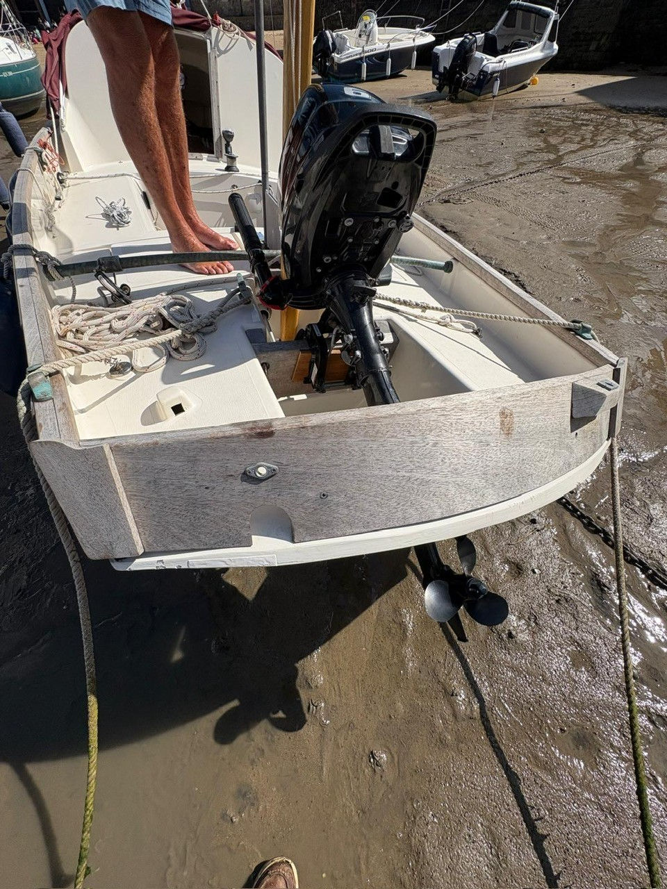 She has the standard yawl rig associated with Drascombes, with a traditional loose footed mainsail.